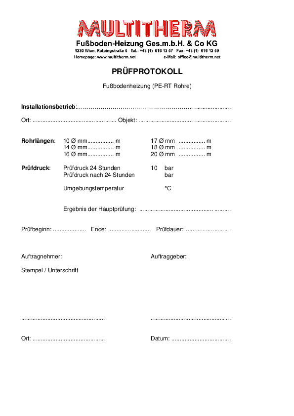 Prüfprotokoll PE-RT