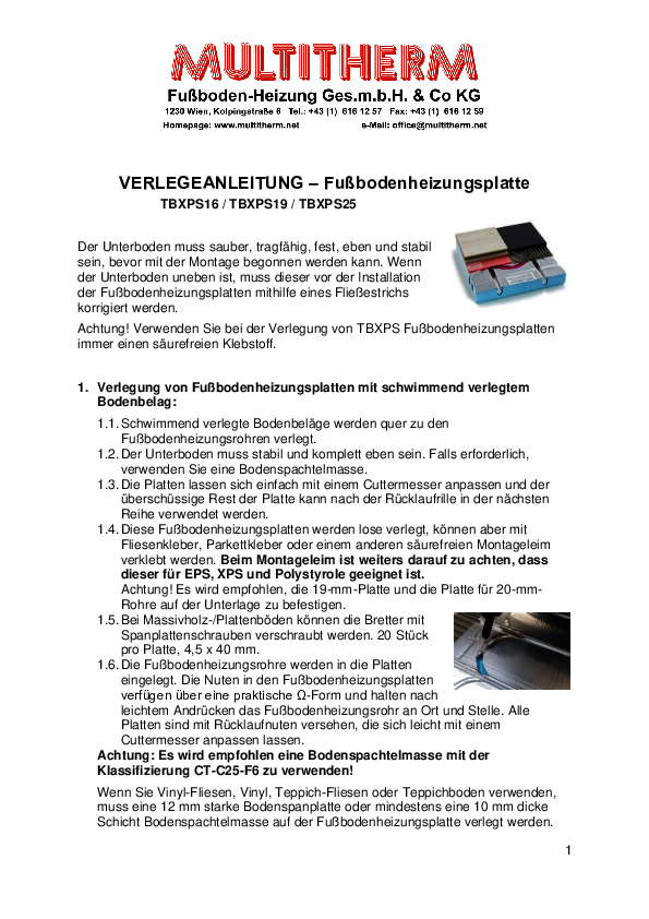 Setzen Sie auf zuverlässige Wärmeverteilung und komfortable Installation mit unseren hochwertigen Verlegeplatten. Wählen Sie die passende Stärke – 16 mm, 19 mm oder 25 mm – für maximale Flexibilität und Leistung.