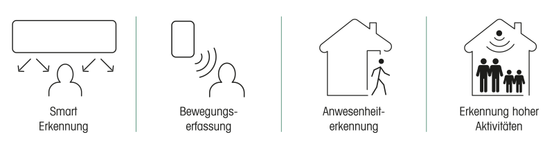 Durch die Anwesenheitserkennung ist eine bedarfsgerechte Klimatisierung möglich. Machen Sie sich keine Sorgen um ein nicht ausgeschaltetes Klimasystem, wenn keiner mehr vor Ort ist. Die High Tech Sensorik macht's möglich.