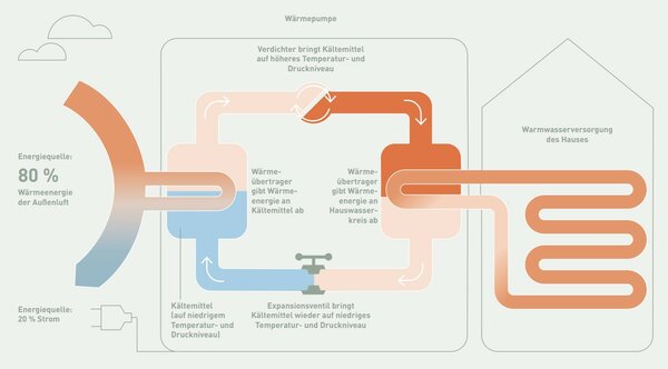 Eine Möglichkeit die Sonne als Energielieferant zu nutzen bieten Luftwärmepumpen. Die Außenluft wird mittels eines Ventilators angesaugt und mithilfe einer Wärmepumpe für Heizzwecke und zu Warmwasser aufbereitet.