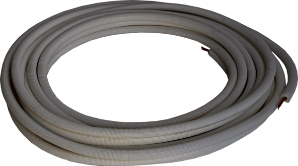 Zwei Kältemittelleitungen verbinden das Innen- und das Außengerät einer Splitwärmepumpe. Eine Heißgasleitung führt ins Gebäude zum Verflüssiger im Innenmodul. Nachdem das heiße, gasförmige Kältemittel seine Wärme in den Heizkreislauf abgegeben hat, wird das flüssige, abgekühlte Kältemittel wieder zum Außengerät nach draußen geleitet.
