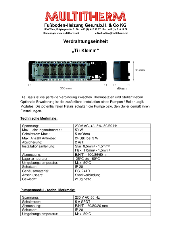 Unsere Verdrahtungseinheit bietet die perfekte Verbindung zwischen Thermostaten und Stellantrieben. Sie kann auch erweitert werden durch die zusätzliche Installation eines Pumpen/Boiler Logik Modules.