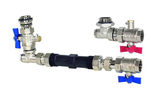 Das Wärmemengenzählerset wird beim Verteiler statt dem Kugelhahnset montiert. Es dient zum Zählen des Wärmebedarfs. Weiters misst es auch noch den Durchfluss. Achtung: Beim Kauf dieses Produktes bitte nur Verteilerkästen mit einer Tiefe von 110mm verwenden.